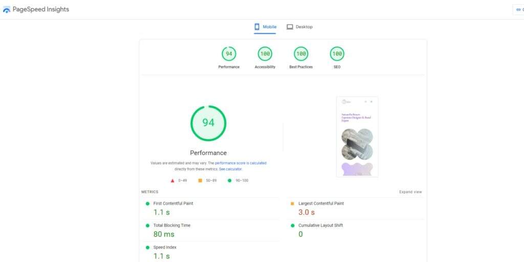 启用并充分配置插件后,网站的加载速度达到了 1.1 秒。此外,以下是其他指标的明细: