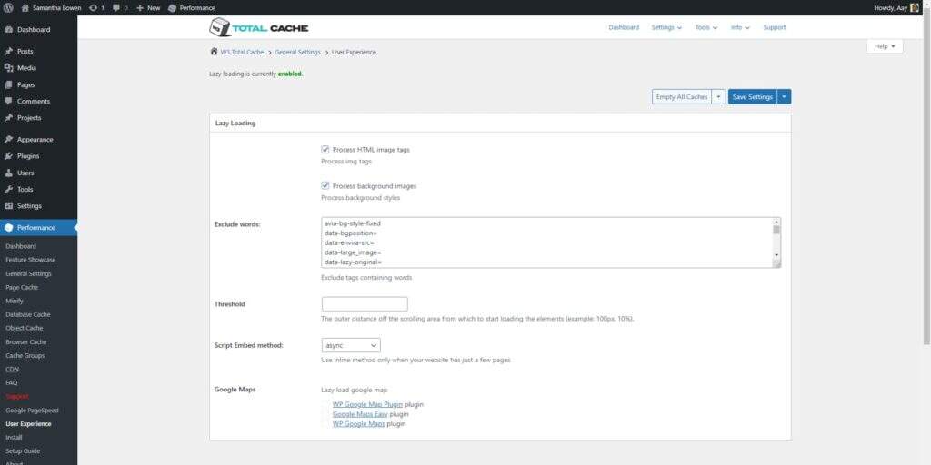 W3TC 为图片、iframe 和 JavaScript 提供了懒加载功能。您可以通过排除特定图片或元素以及设置加载阈值来自定义懒加载。