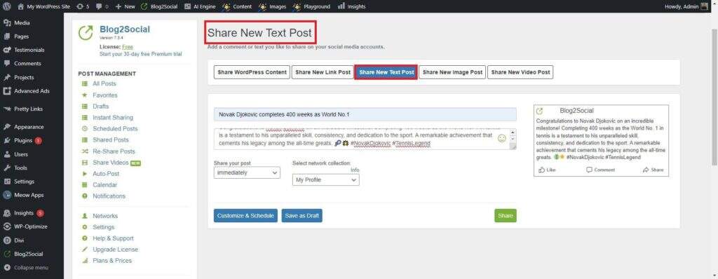 此外,它还能确保您的内容在每个平台上都看起来不错。它可以为您的内容添加特殊标签,使其显示效果更佳。最后,它还能保持一致性。即使你很忙,Blog2Social 也能让你的社交媒体保持活力和趣味。这款插件让社交媒体管理变得更简单。它可以让你专注于制作酷炫的内容,同时处理棘手的部分。