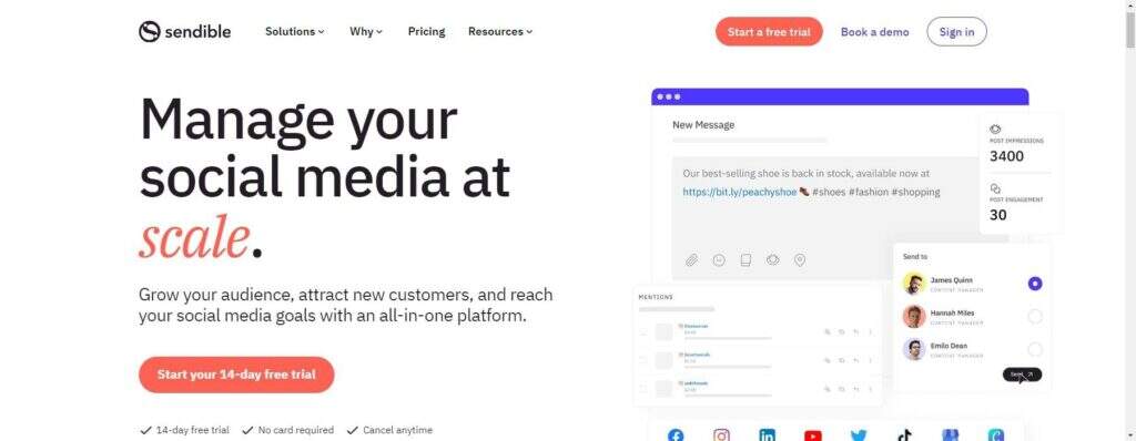 Blog2Social 是一款全面、用户友好的工具,彻底改变了博主和企业管理社交媒体的方式。其直观的界面、强大的日程安排功能以及与多个平台的无缝集成,使其成为任何希望简化社交媒体工作流程的人的必备工具。不过,如果您正在寻找一个更强大的社交媒体插件,它的功能超出了 WordPress 网站的范围,我们建议您使用 Sendible。它为在多个社交媒体网络上安排和发布内容提供了更简化的方法。尽管如此,Blog2Social 还是提供了各种社交媒体功能,以满足您的需求。