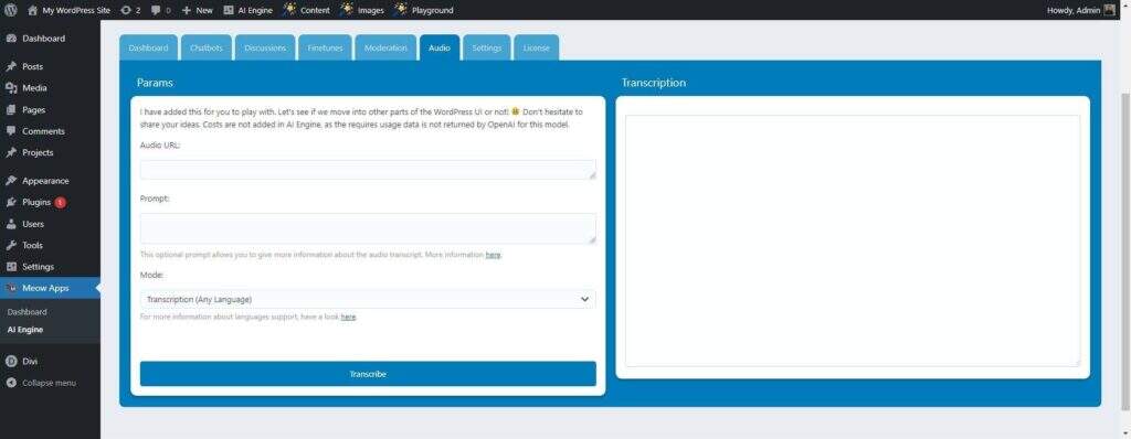 请注意,使用 AI Engine 插件即表示用户同意监控和管理人工智能制作的内容,并处理任何问题或滥用。