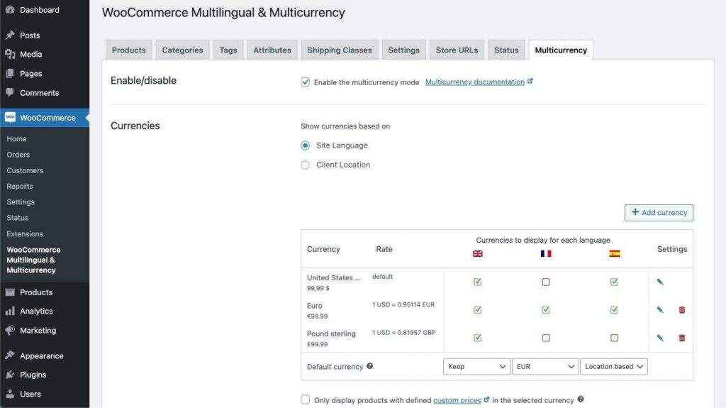 对于 WooCommerce 商店来说,需要在更多地方进行翻译,而不仅仅是页面上的文字。价格也需要本地化,以便读者理解。WPML 可让店主根据语言设置以不同货币显示产品价格。它自带转换率转换器,使价格具有正确的货币符号和实际成本。