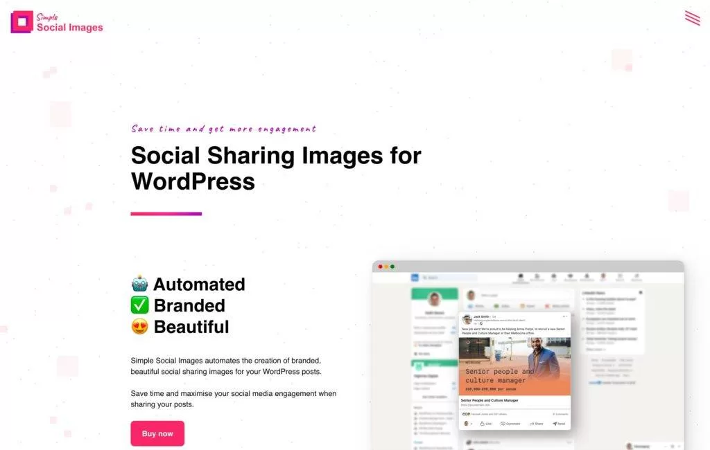 与我们列表中的大多数其他插件一样,Simple Social Images 允许您使用各种模板轻松生成自己的精美社交分享图片。该插件可以从 WordPress.org 下载,但需要每年订阅才能使用。再也不用为每篇文章手动创建图片了–现在您可以让 Simple Social Images 为您代劳!