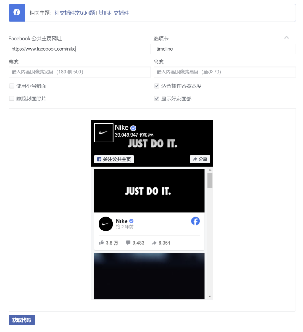 这款 Facebook widget 插件还提供简码,让你两全其美。对了,它完全免费,没有任何升级付费提示!