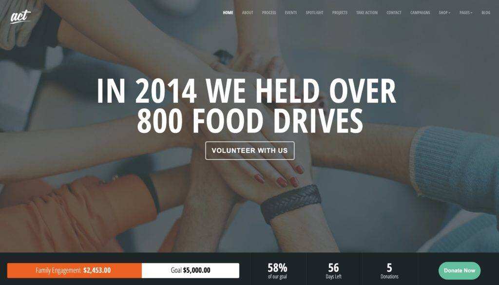 您还可以添加捐赠插件,在网站上添加 “捐赠” 页面或按钮,上面列出的大多数高级非营利性主题都包含了这一功能。这个按钮应设计得尽可能明显,这样人们就不会错过为你的事业捐款的机会。