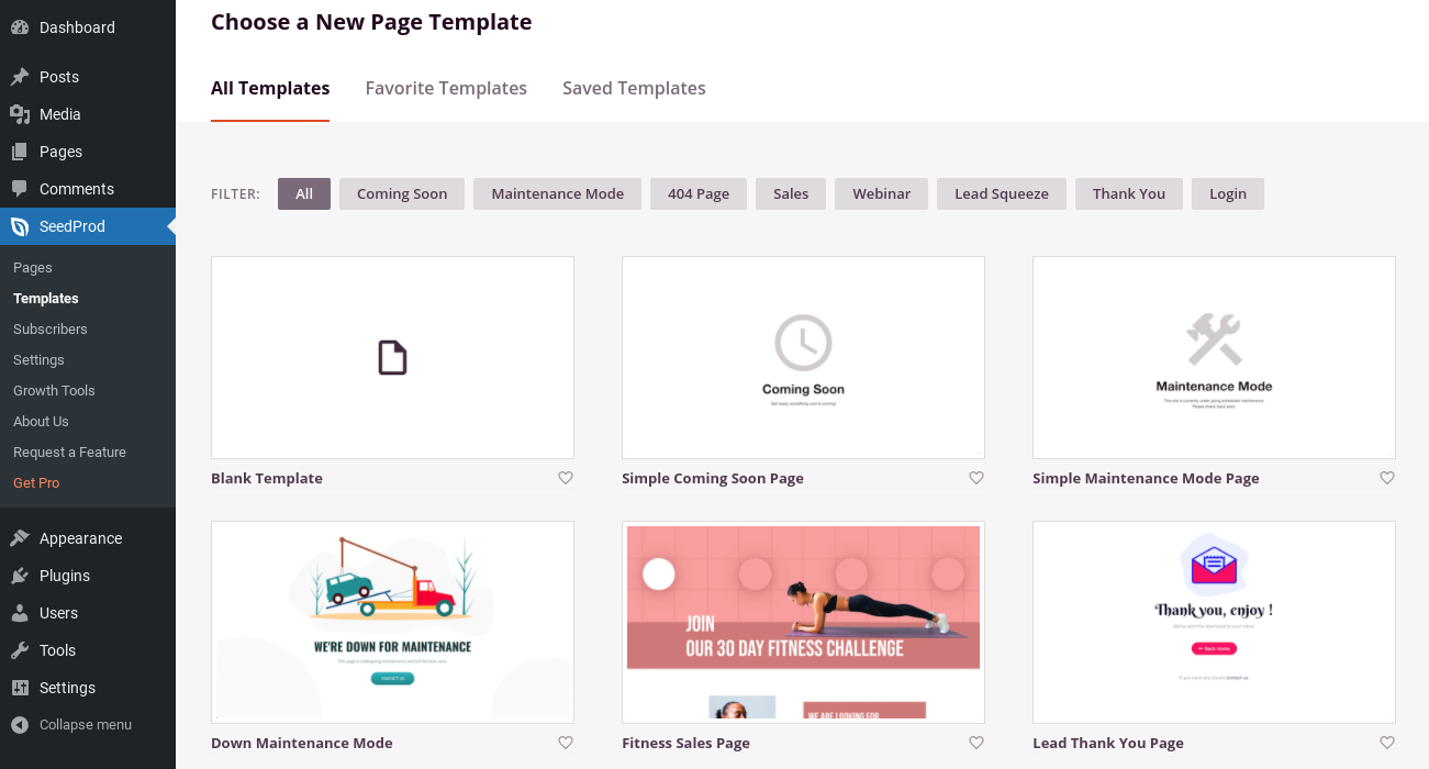 SeedProd有超过一百万的活跃安装,是另一个非常受欢迎的WordPress着陆页插件。如果您需要一种快速简便的方法来为您的网站创建登陆、Coming Soon和/或维护页面,这是一个方便的工具: