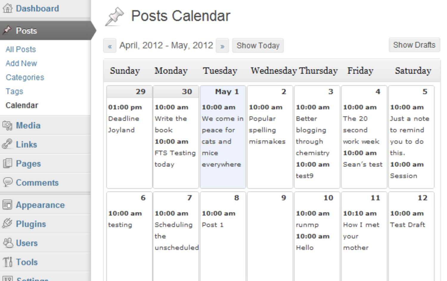Editorial Calendar 插件还提供强大的管理功能。您可以在日历中拖放文章,轻松重新安排日程。您还可以直接从该界面对文章进行快速编辑。