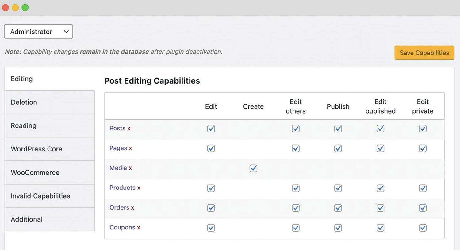 通过该插件,您可以从头开始或通过复制现有角色来创建新角色。如果某个角色已过时,只要没有用户分配给它,就可以删除它。该插件还可以更改分配给新用户的默认角色。
