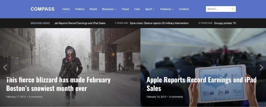 Compass是一个复杂的杂志主题,使你能够以风格展示你的内容。这个可定制的主题,有一个容易配置的主页,将让你创建一个独特的网站。它还包括一个可拖动的幻灯片,支持触摸。