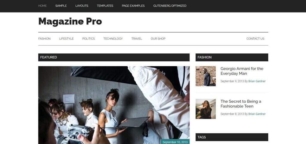 Magazine Pro也有六个独特的帖子布局,让你可以完全定制你的文章如何显示。此外,这个主题的侧边栏可以很容易地展示各种小工具,如你的最新类别,评论,搜索,以及更多。