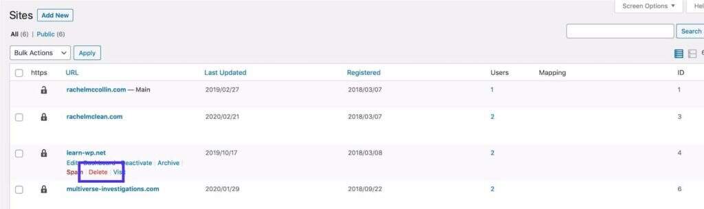 在WordPress多站点网络中删除一个站点