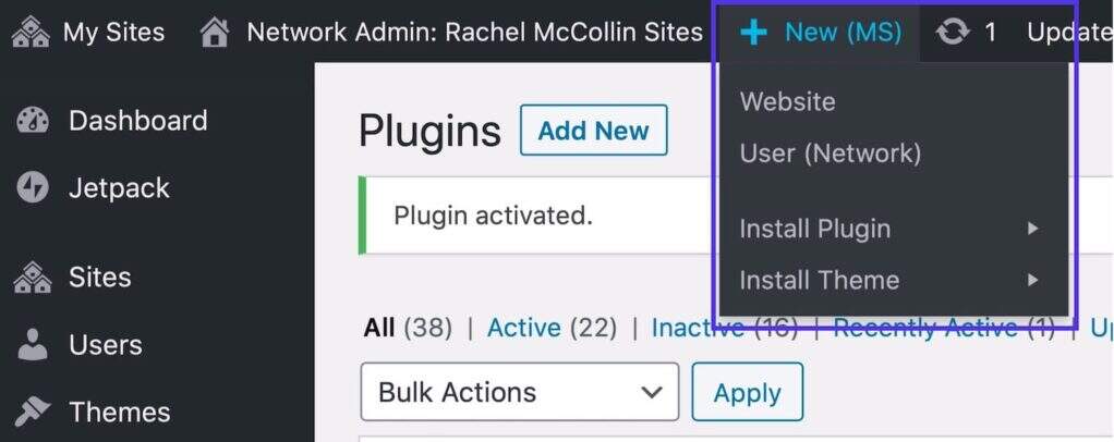 在你的WordPress网络上安装和激活WordPress多站点插件