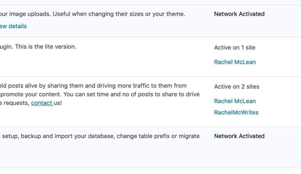 这意味着,如果你想备份或迁移一个单独的网站,你会知道哪些插件和主题在它上面被激活。这对测试也很有用–如果一个插件在你的网络中的一个网站上引起问题,你就知道你需要测试其他哪些网站。