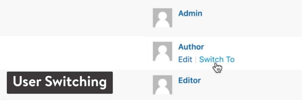 只需进入用户管理列表,将鼠标悬停在一个用户上,点击Switch To链接。它可以节省大量的时间再次登录和退出,让你更好地支持你的网络用户。