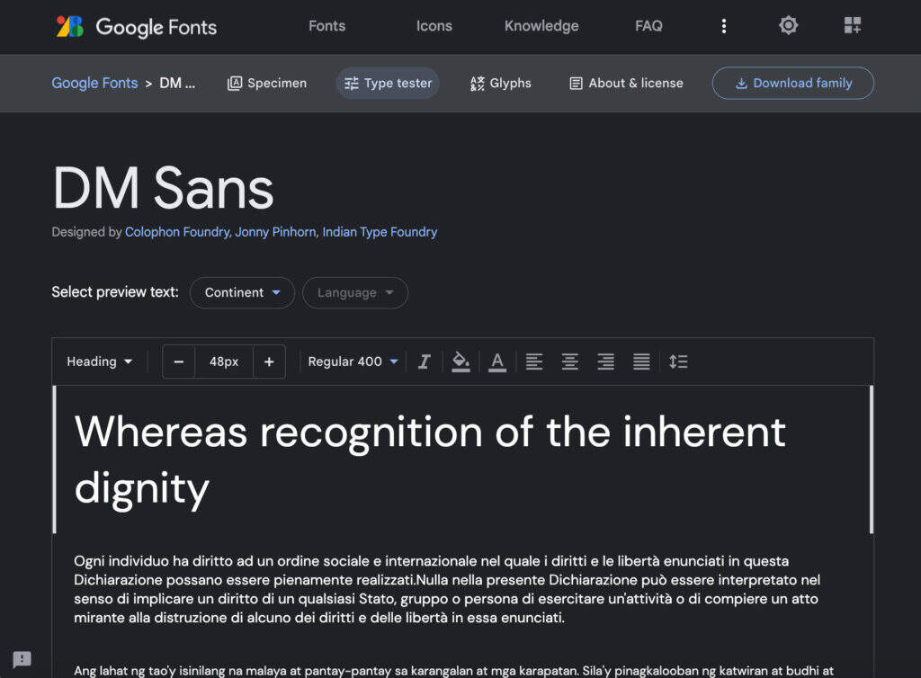 DM Sans 是另一种在 SIL 开放字体许可证 ( OFL )下获得许可的字体,由 Colophon Foundry 委托 Google 委托,由 Colophon Foundry、Jonny Pinhorn 和 Indian Type Foundry 设计。