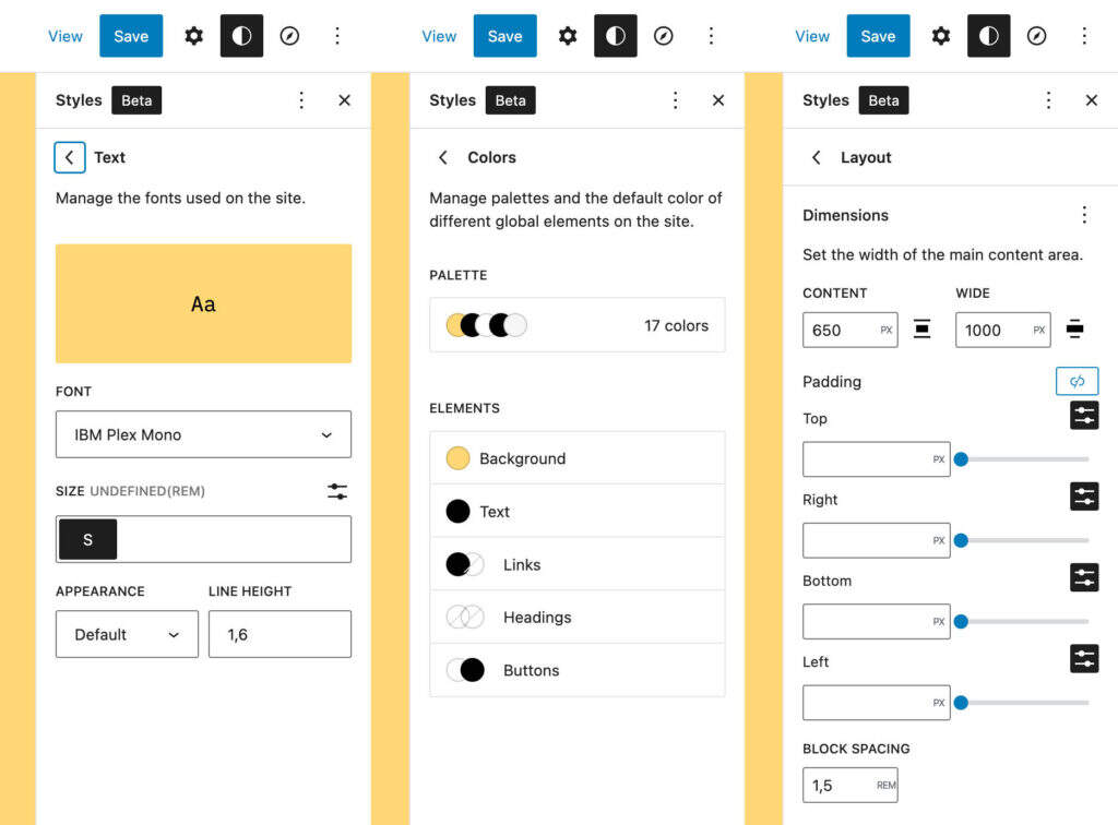 您可以在站点编辑器的全局样式界面中浏览这些样式。在这里你可以