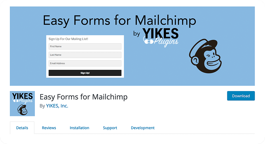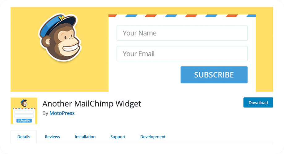 Another MailChimp Widget是一个免费插件。您可以从WordPress.org下载插件并将Mailchimp免费连接到WordPress。