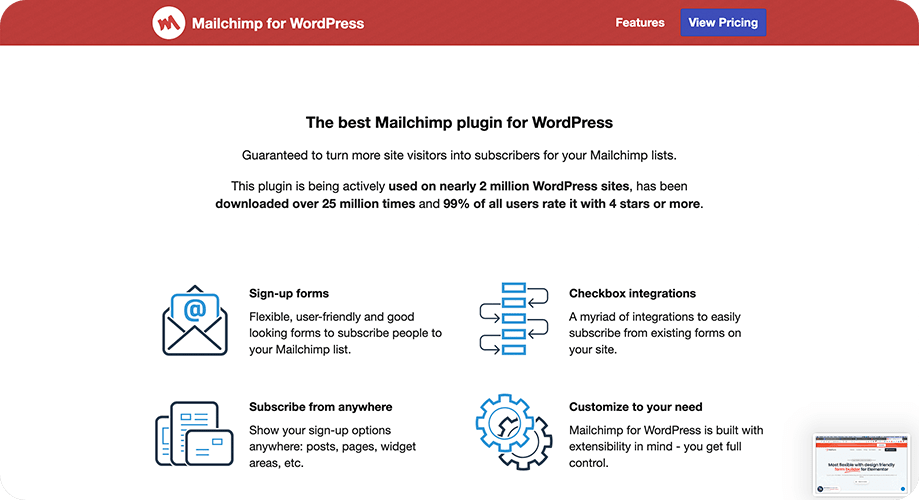 让我提一下它的一些功能,以便您可以想象如何使用此插件将Mailchimp连接到WordPress可以为您提供帮助。