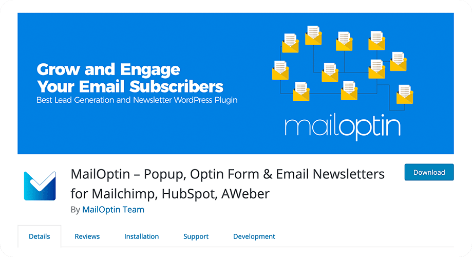 如果您想创建弹出窗口、订阅表单、用户注册表单,以及向订阅者发送电子邮件通讯,您可以尝试使用MailOptin将Mailchimp与WordPress连接起来。