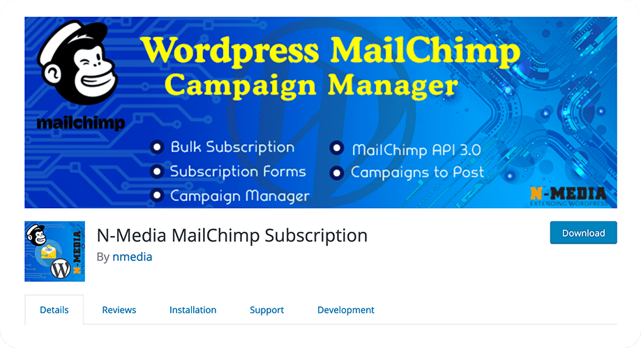 如果您想直接从管理区域管理您的Mailchimp帐户订阅者,MailChimp WD是您的不错选择。这个Mailchimp WordPress集成插件将使您能够将Mailchimp电子邮件集成到您运行的WordPress网站中。您需要做的就是使用API密钥将其与Mailchimp连接起来。