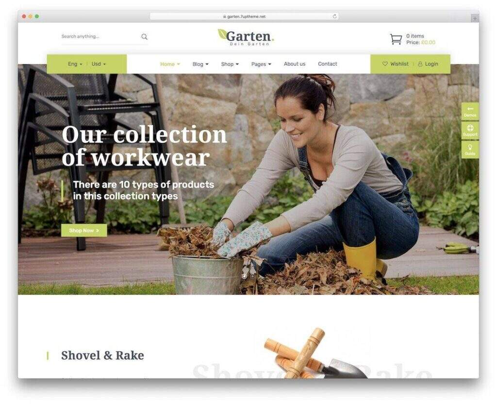 多语言和货币支持、返回顶部按钮、滑块和时事通讯订阅表格只是您会发现非常有价值的一些附加功能。Garten的其他特色包括网格或列表商店、粘性菜单、社交媒体集成、大型菜单和诱人的动画。使用Garten,您也无需担心布局灵活性,因为它与所有设备和浏览器兼容。