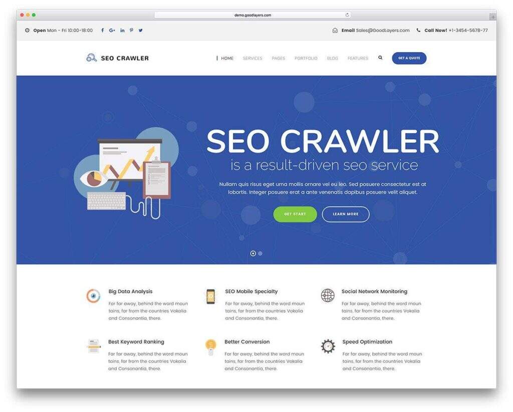它带有6个独特的演示和许多子页面自定义。SEO CRAWLER基于GoodLayers,并具有著名的拖放页面构建器。