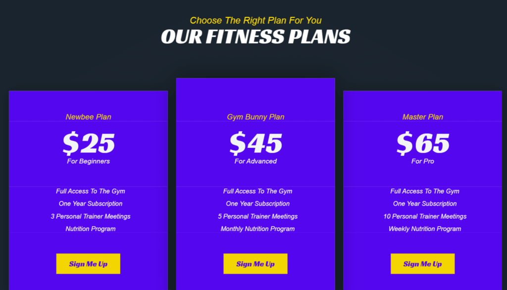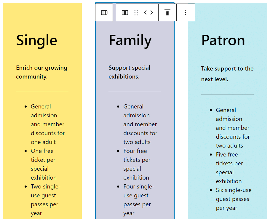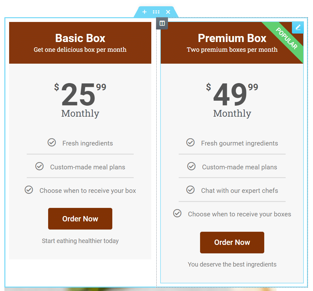 请记住,如果您使用多个列,则需要在每个列中添加一个单独的价格表小工具。尽管每个表格都是一个独特的元素,但用户会看到它们并排(或在移动设备上彼此下方)作为一个部分的一部分: