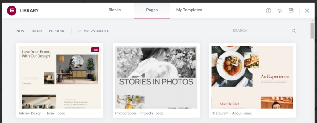 使用Elementor创建定价表很简单。要开始使用,请打开Elementor编辑器。从这里,您可以选择从空白页面开始或从Elementor库中导入模板: