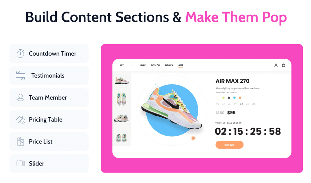- 访问预建元素,例如按钮、评论部分和产品评级