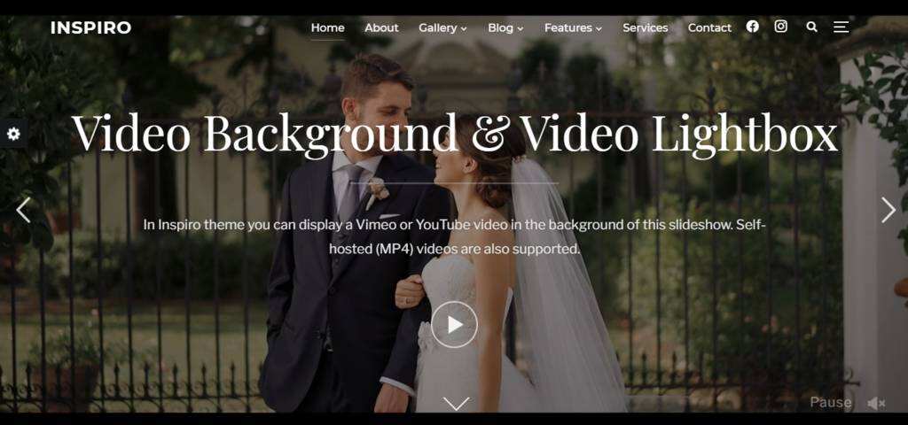 Inspiro以视觉为导向的主题功能和元素迎合专业摄影师和摄像师的需求。它的全屏幻灯片支持自动播放来自YouTube、Vimeo的视频以及移动和平板设备上的自托管视频,非常适合创建动态摄影网站。