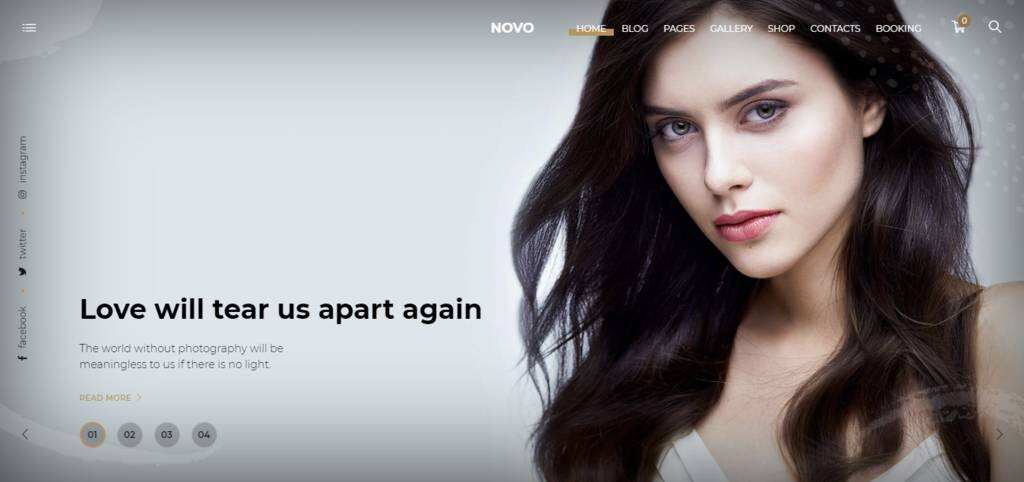 Novo提供多种演示、画廊类型和布局包,有专为摄影师打造的浅色和深色版本。每当您想开始销售您的作品时,还可以使用购物功能来支持交易。