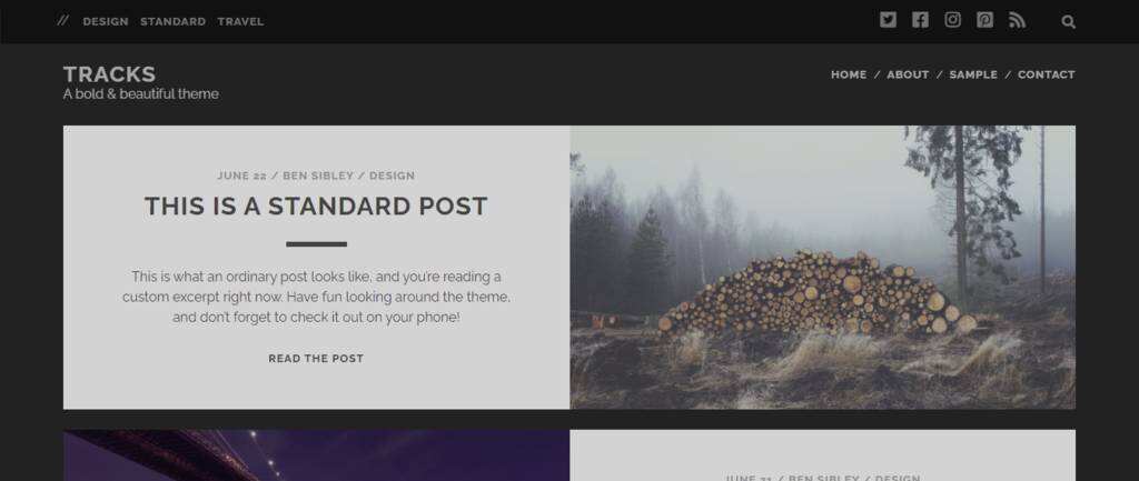 Tracks是博客的最佳摄影主题选项之一。干净、简约的外观将确保您的博客文章具有最佳的可读性。结合其广泛的字体样式选择,Tracks可以轻松创建一个吸引人的摄影网站。