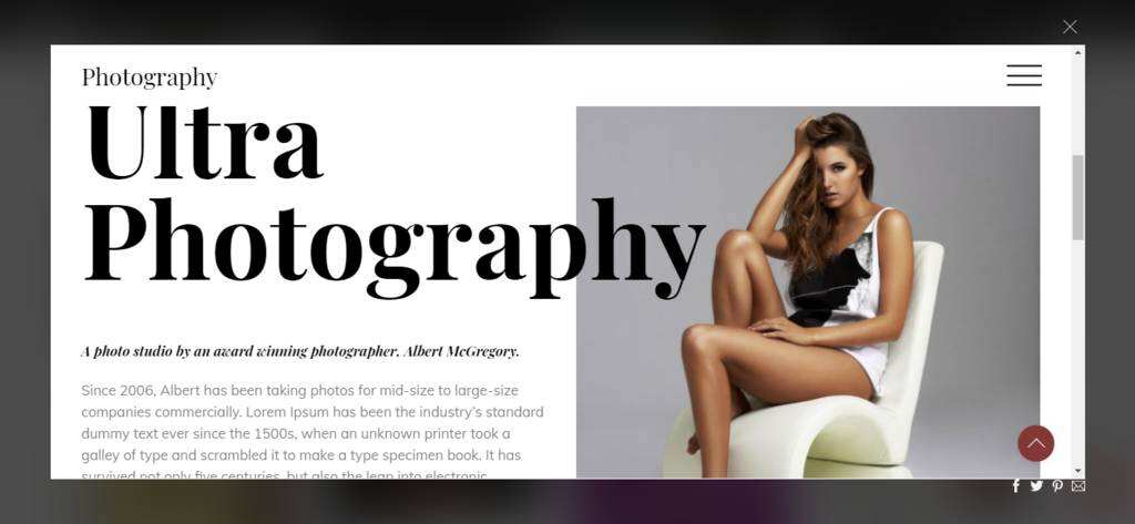 Ultra是另一个现代WordPress摄影主题,具有各种预制演示站点。使用拖放式主题构建器可自定义60多种预先设计的布局。智能布局选项可让您为每个页面创建独特或统一的外观。