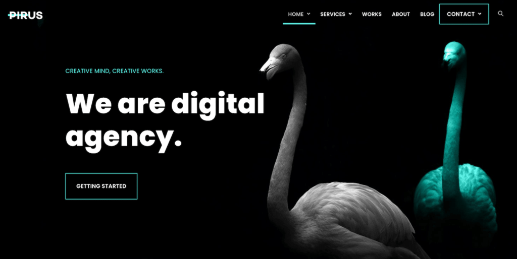 Pirus模板被标记为黑暗和现代的设计,它当然不辜负这一承诺。引人注目的配色方案使其成为您的数字代理或自由职业者的引人注目的设计: