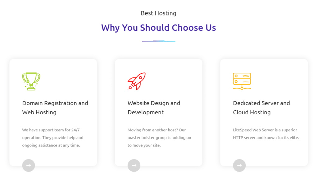 Web托管包可能是一个复杂的主题。为了使这些信息更易于理解,专用模板使用网格布局。在这里,您可以将每条内容呈现为一张简短的卡片。