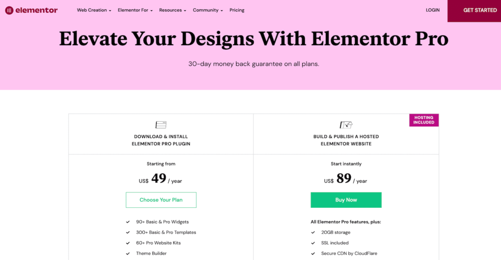 Elementor Pro计划每年从49美元到999美元不等。该公司还提供30天退款保证,因此您可以在购买前试用。