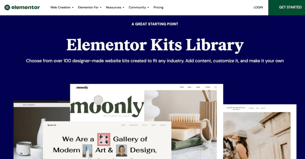 Elementor Pro许可证包括访问60多个专业网站工具包。这些是可以帮助您创建完整网站的模板、页面、弹出窗口和其他组件的捆绑包。如果您购买专家许可证或更高版本,您还可以访问20个专家网站工具包。