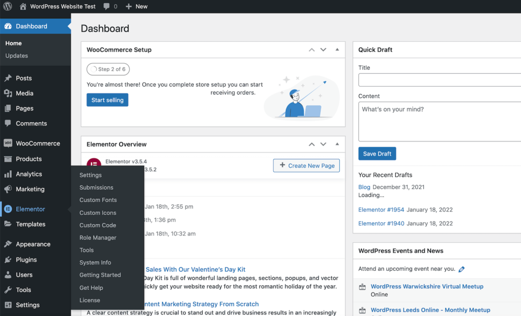 您现在已准备好开始使用Elementor!要开始使用,只需单击侧栏中的Elementor选项。