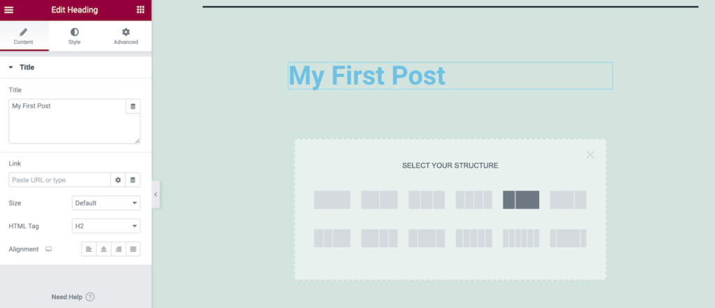结构选项由一个或多个列组成。最终,您会将小部件放置在这些列中。它们在创建更有条理的布局方面发挥着重要作用。
