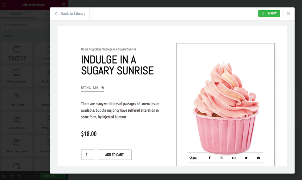 当您找到要使用的模板时,单击“插入” 。如果您之前没有连接到Elementor的模板库,弹出窗口会要求您完成该步骤。