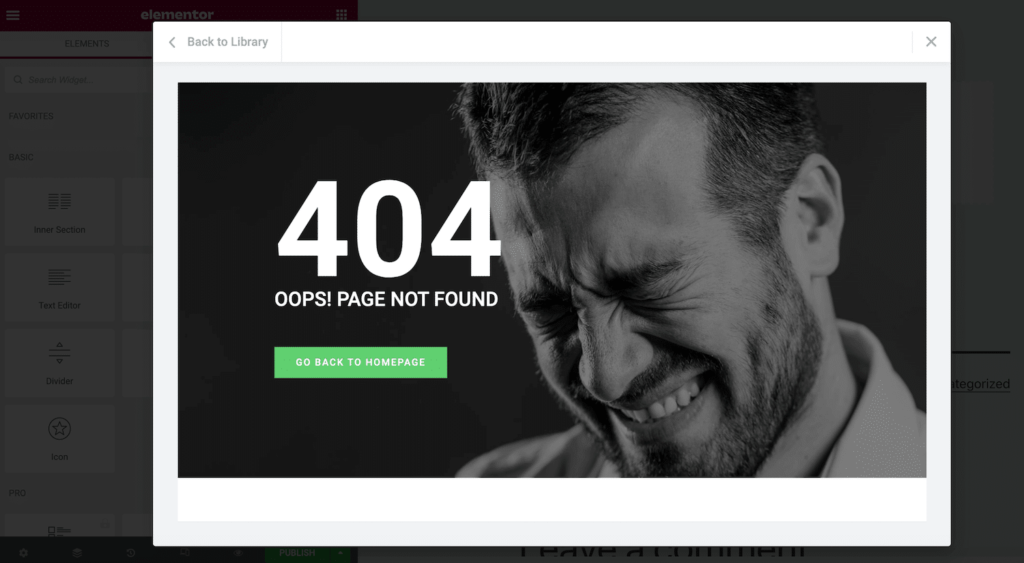 建立此连接后,Elementor将插入您选择的模板。您现在可以自定义它。例如,您可以添加更多小部件或删除任何占位符内容。