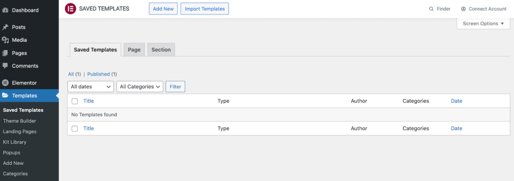 此设计现在将保存到Elementor库中。您可以通过启动库并选择“我的模板”选项卡来访问它。
