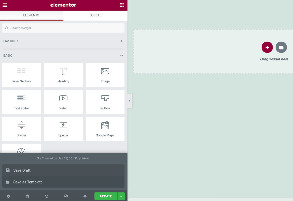 您还可以将小部件添加到此部分。在Elementor侧边栏中,找到您要使用的小部件并将其拖到主画布上。