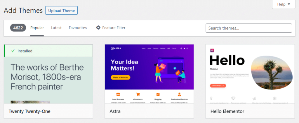 如果您从WordPress.org安装免费主题,您只需从仪表板中的外观 > 主题 > 安装插件选项卡中查找并安装它。