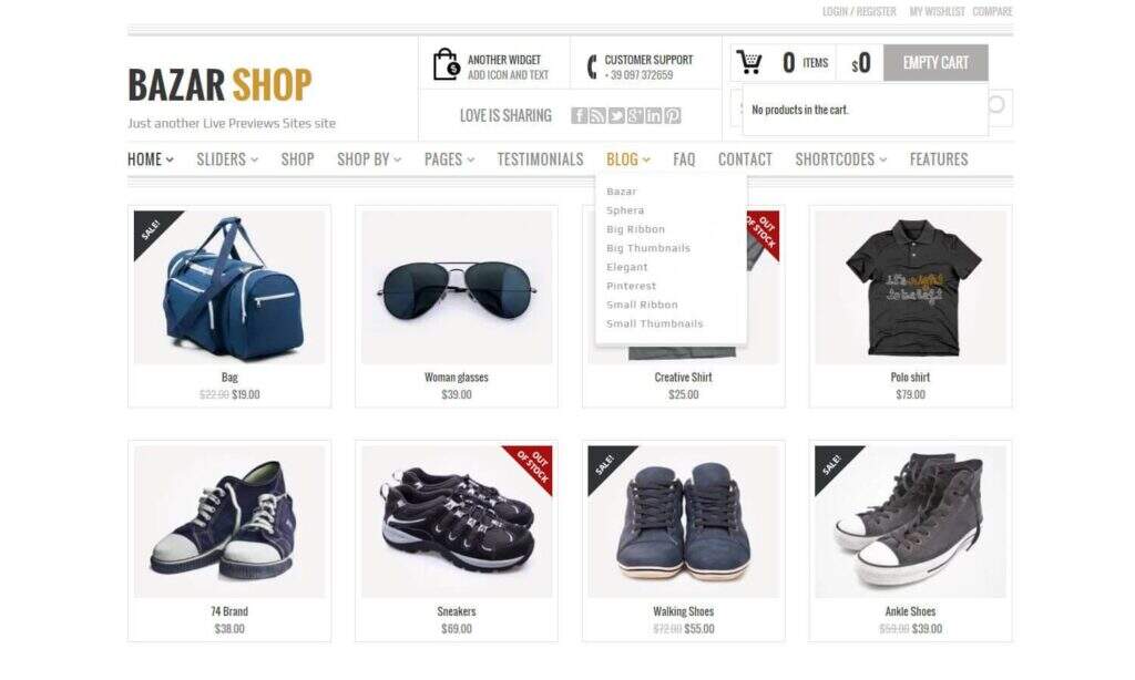 Bazar Shop仅作为ThemeForest上的高级主题出售。它是迄今为止您能找到的最通用和最受欢迎的WooCommerce主题之一。它非常关注大型产品库。因此,与销售十种产品的网站相比,该主题更具亚马逊式的繁忙外观。