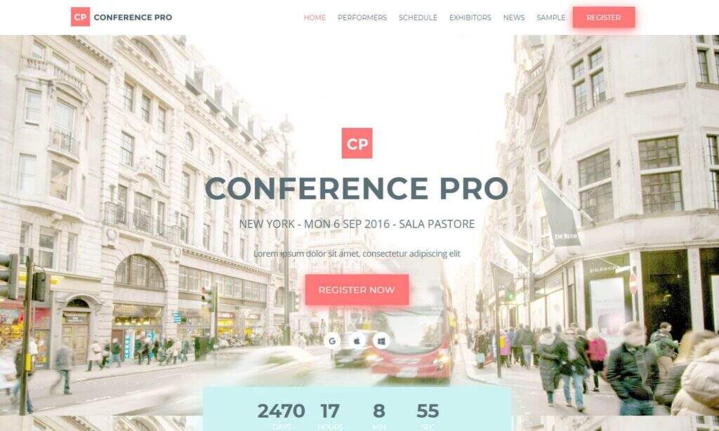 Conference Pro用作专用的会议WordPress主题,但可以对其进行调整以适用于大多数其他活动。高级主题有一个漂亮的前端编辑器。您还可以从Eventbrite和Facebook活动等地方导入数据。除了活动作曲家和几种售票选项外,Conference Pro主题看起来像是赢家。