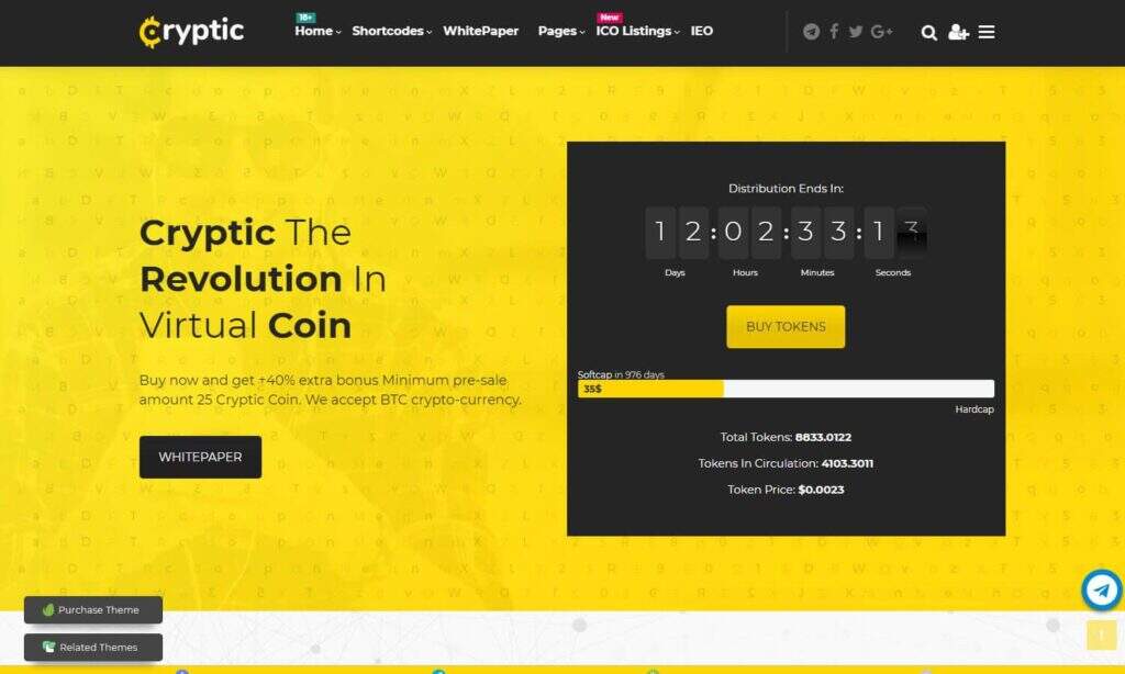 Cryptic提供了一些有趣的演示,用于编写有关加密货币或跟踪它。例如,其中一个演示用于IEO列表页面,而另一个演示具有完整的ICO目录。总体而言,该主题有超过40个自定义选项,用于设计和使网站看起来完美。