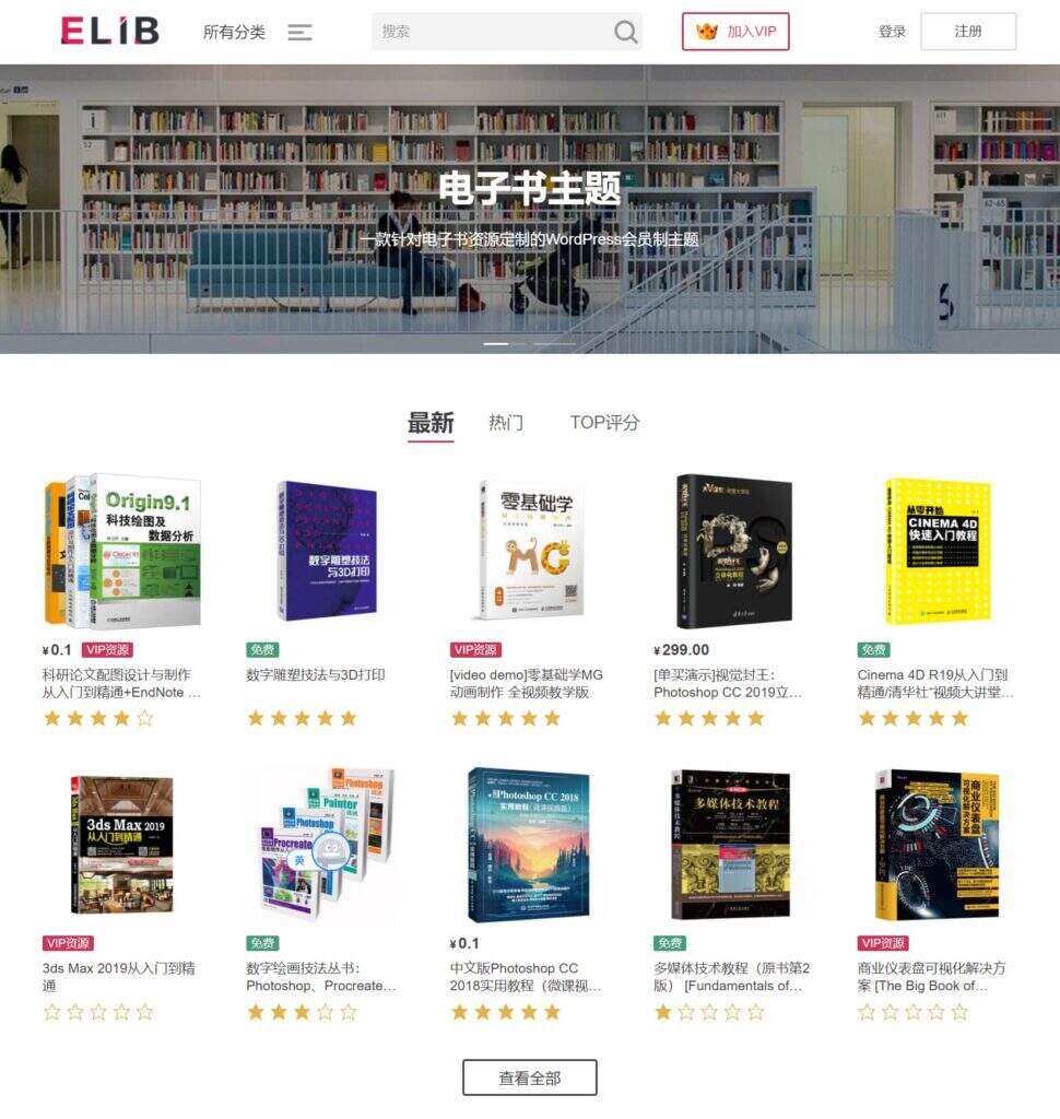 eLib Pro是一款针对电子书资源定制的WordPress会员制主题,在WBOLT现有的强大的会员管理系统上,新增了eBook电子图书资源管理功能及独立定制了电子书网站UI设计,可以帮助站长快速打造一个专业的电子书资源站。