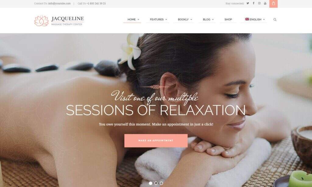 Jacqueline是我们最喜欢的美发沙龙和水疗中心之一。这样做的原因是因为您可以快速链接到 Bookly 系统以接受约会。还有一些工具可用于管理这些约会和在线从您的商店销售产品。除了预制的定价表和时事通讯,杰奎琳绝对不会出错。