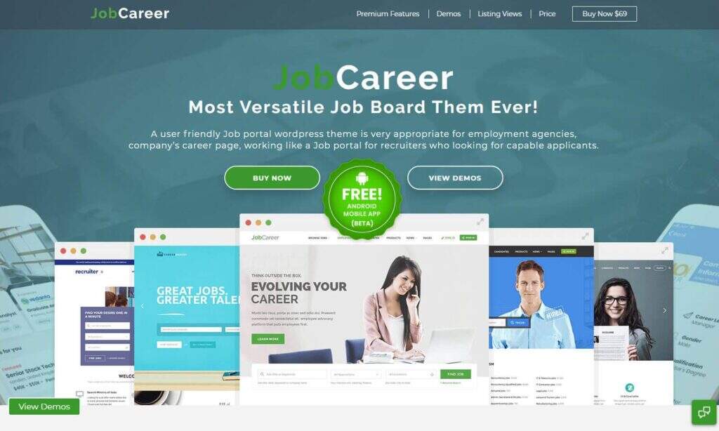 JobCareer主题致力于提供一种不需要任何额外插件即可使您的工作板功能齐全的设计。包括几个演示和高级附加组件以确保发生这种情况,因此您应该准备好开始推销公司并获得某个行业的某些工作列表。